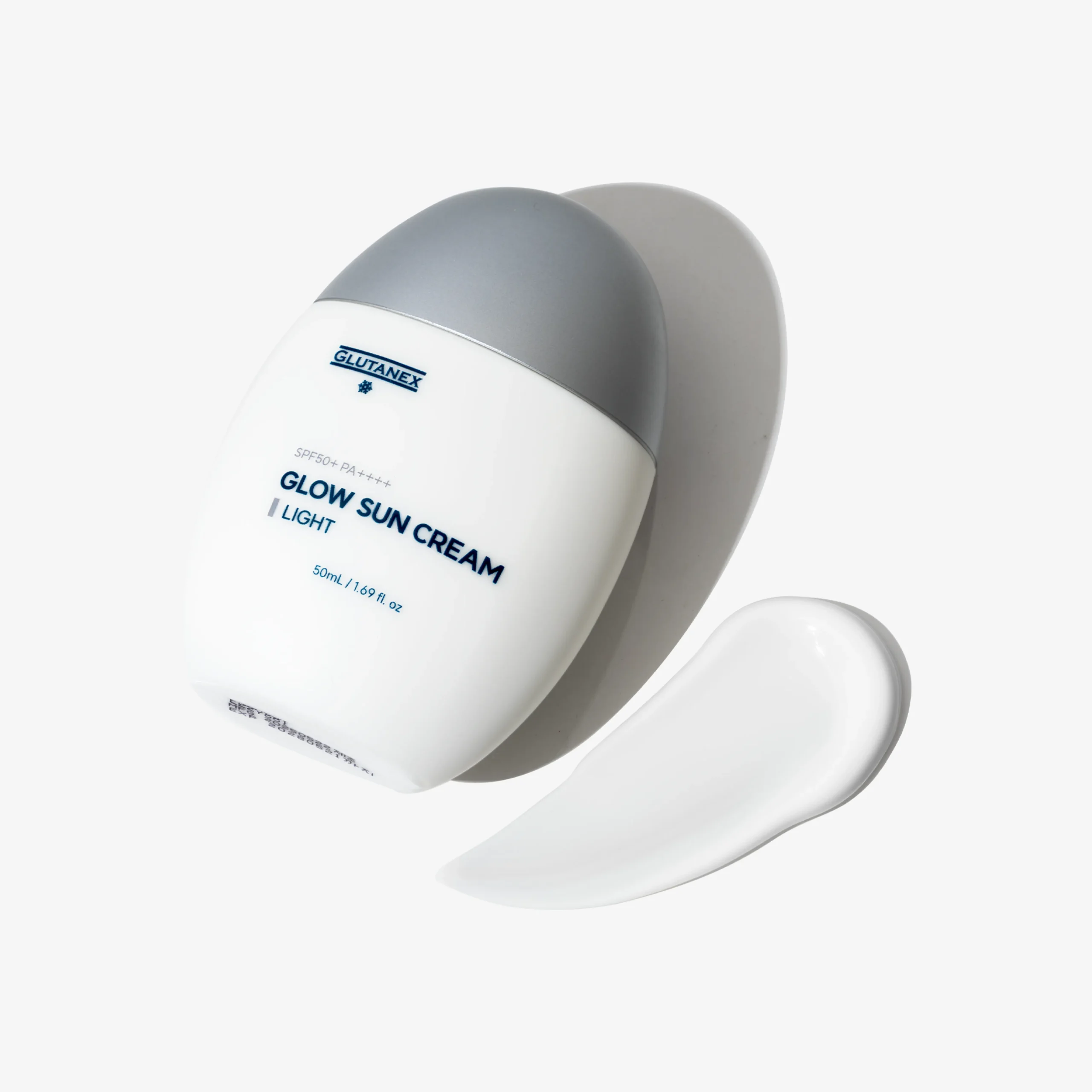Glutanex Glow Sun Cream Light is a refreshing sunscreen formulated with Glutathione liposomes, Hyaluronic Acid, and Centella Complex to protect, brighten, hydrate, and soothe the skin with a cooling effect.